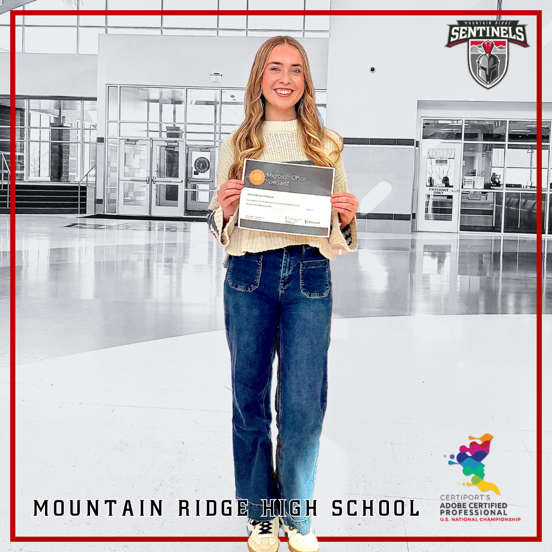 Adelaide achieved a perfect 100% score on her Microsoft Office Specialist (MOS) certification exam. Based on this exceptional performance, she has been officially invited to represent the State of Utah at Certiport’s 2026 U.S. National Championship this June at the Gaylord Opryland Resort in Nashville, Tennessee.